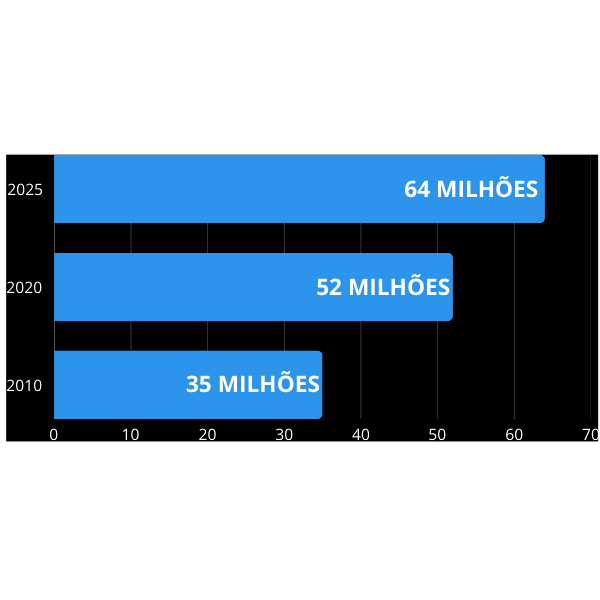 Crescimento de 82% entre 2010 a 2025: de 35 Milhões para 64 Milhões de Liquidificadores em lares brasileiros.